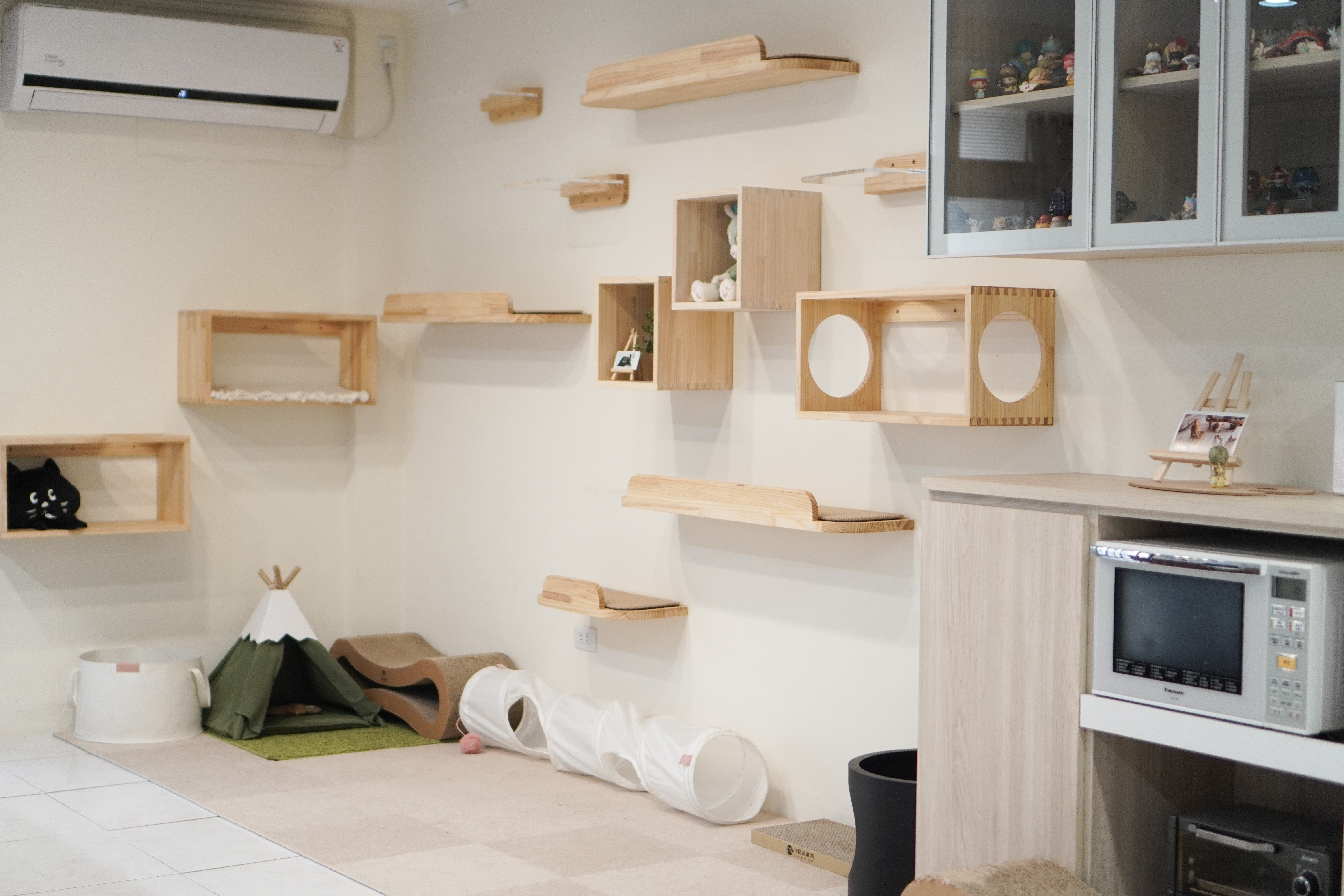 還是想要跟大家強調一個重點,在這個寸土寸金的年代!能省下一坪的空間就是替大家現省幾十萬呀!!! 貓咪天生就喜歡往上跑跳,除了購買體積龐大的貓跳台,也可以考慮家中空白的牆面上增加貓咪跳板。除了省空間,更讓貓咪有舒服的活動空間呢!