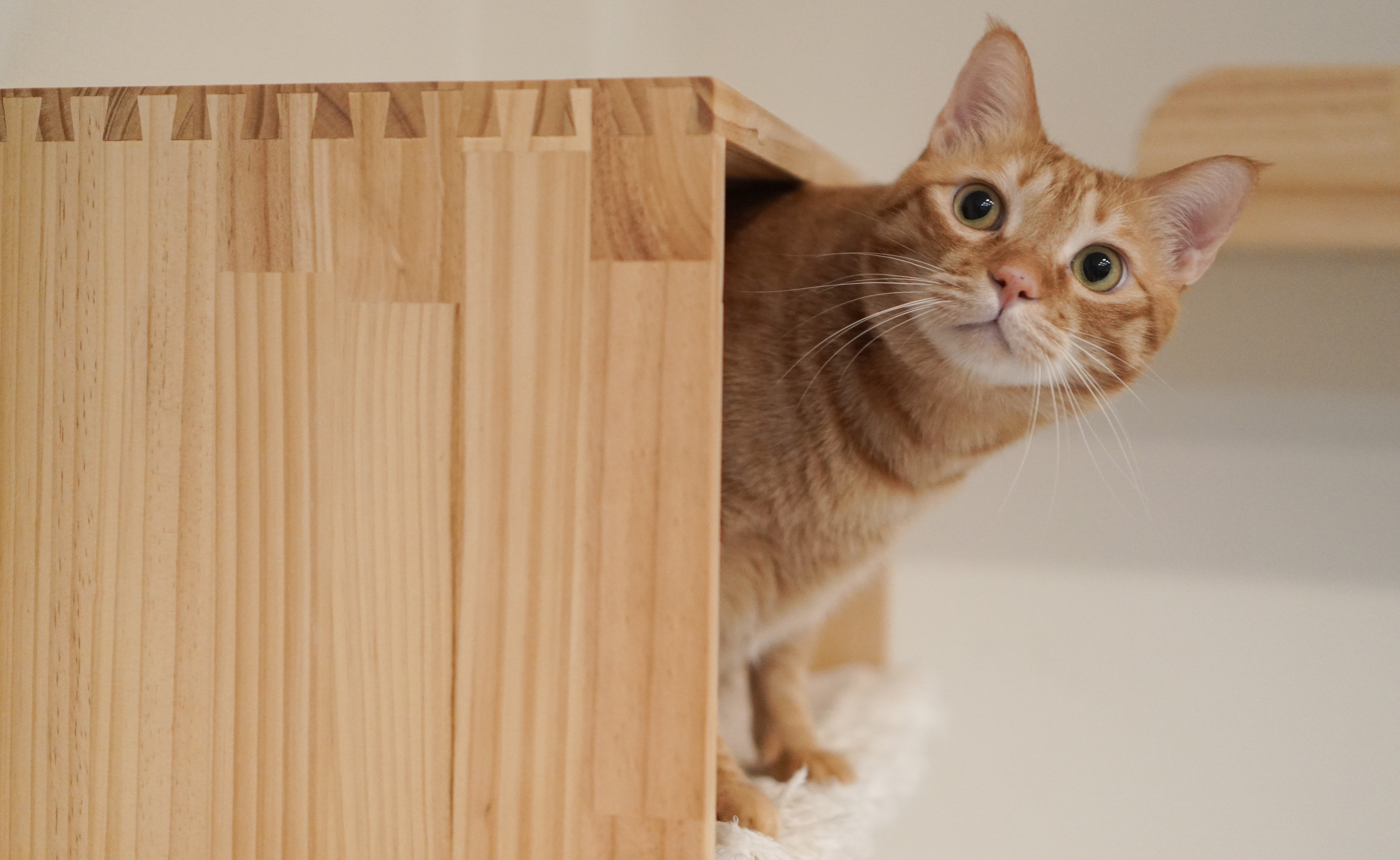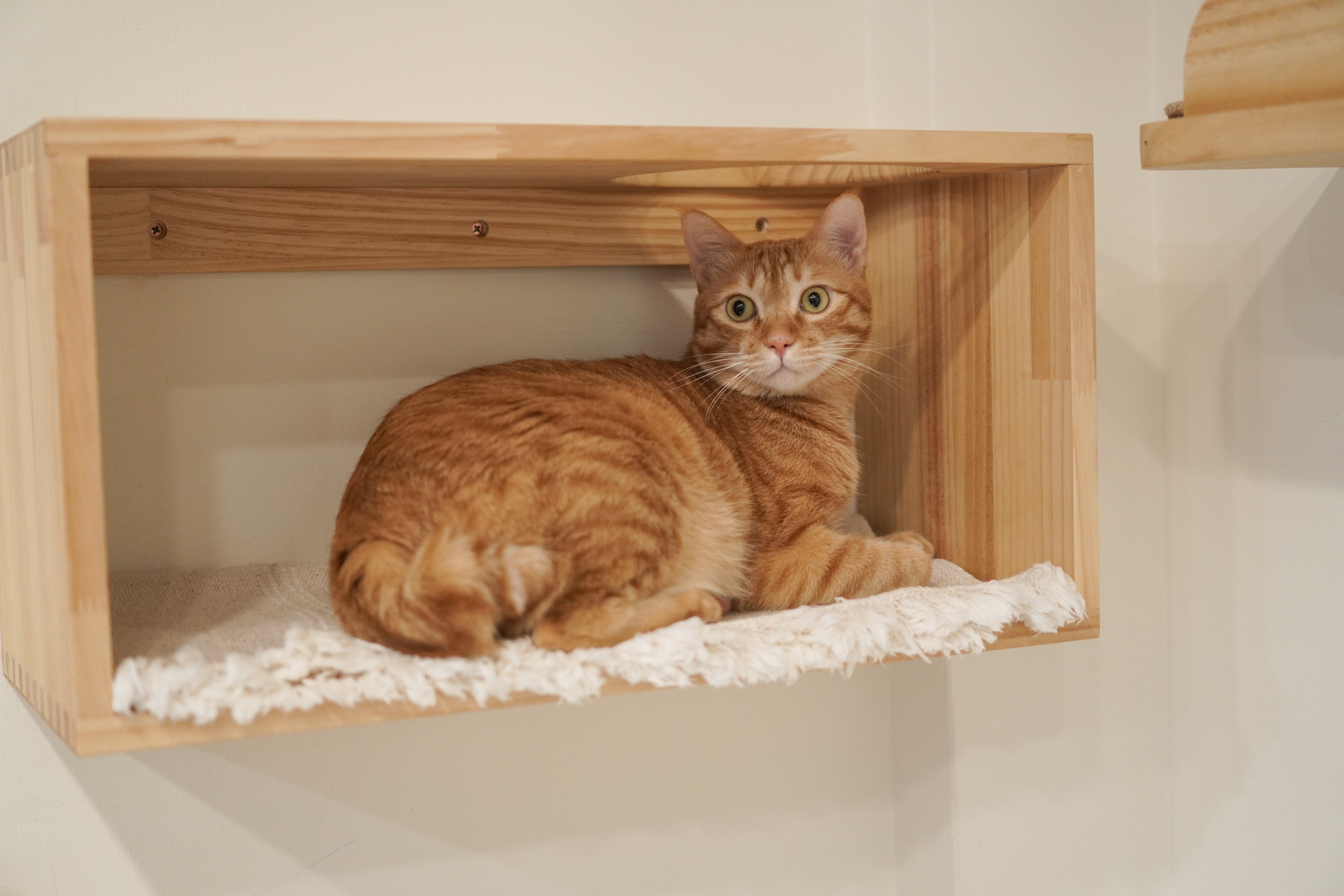間簡單單的牆上櫃子,除了可以客製化挖孔位置,變成貓咪可以自由穿梭的貓隧道、睡覺的貓屋;也可以不要挖孔,變成主人自己擺放、收納物品的區域哦! 收一些貓糧或者貓玩具也是很方便的呢!