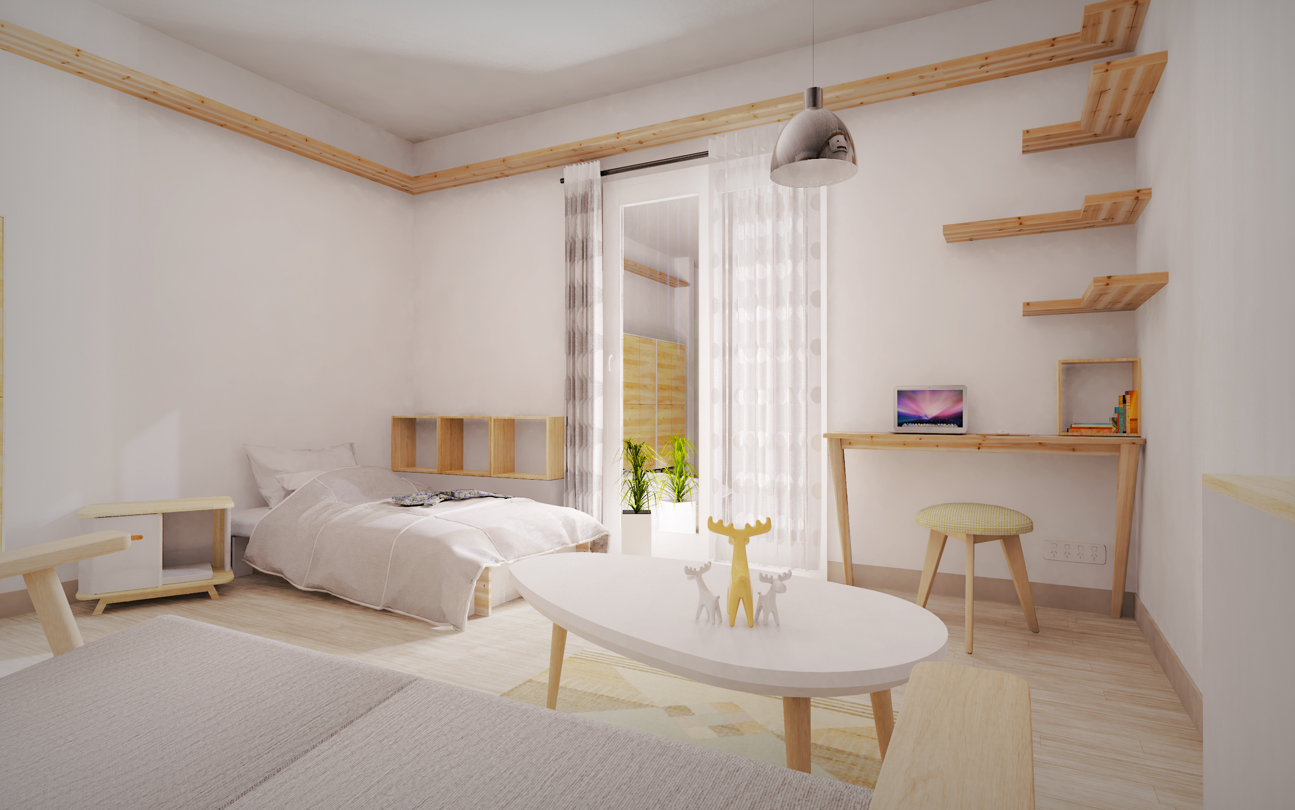 ▎業主需求簡述:開放式的空間,希望以極簡、低彩度淺色日系,且不會太高成本的方式執行設計,家具部分僅需考慮床鋪、客廳區域沙發與茶几、一張小工作桌即可。希望空間可以讓貓咪在家中自由穿梭,並且整體風格不要太可愛,也不要一眼覺得是寵物用品,而是能夠融入空間風格為主。