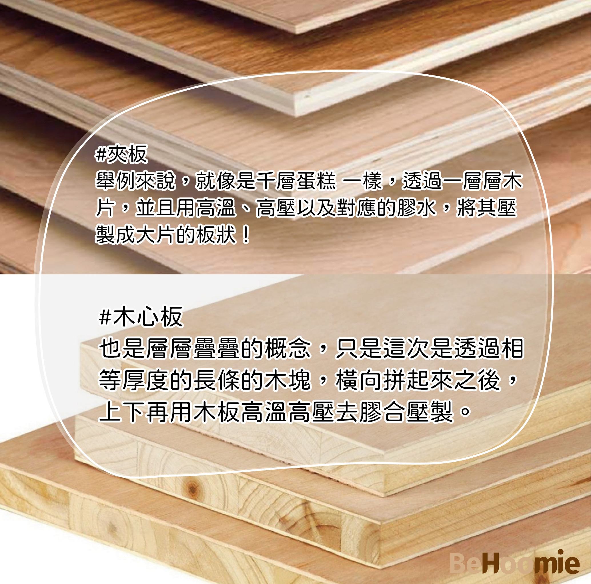 接下來就是大家最常接觸的材料的,合成材料包含「夾板」、「木心板」,「密集板」、「塑合板」、「美耐板」等等的材料。快速給大家一些基本觀念!(要細談實在是可以寫成一本書,但大家只需要知道基礎知識就可以了!)